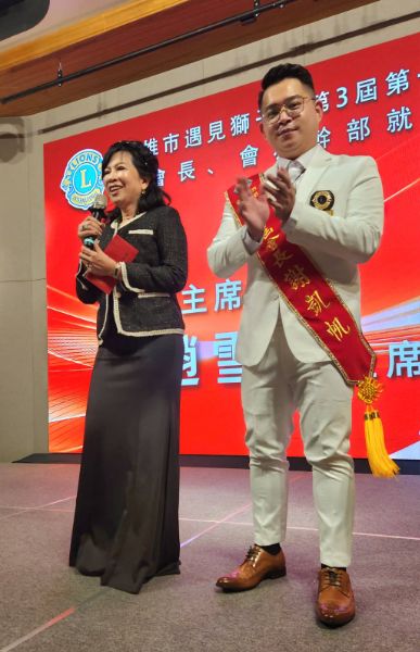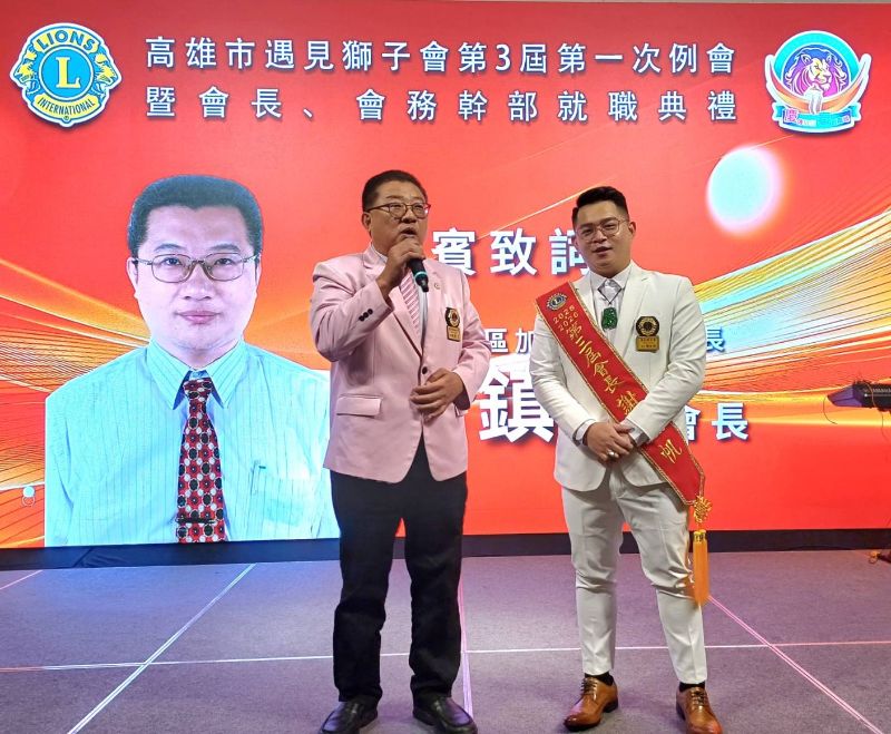 圖/首席顧問300A1區台北加盟獅子會會長鍾鎮宇(左)致詞。(記者陳雯萍攝)