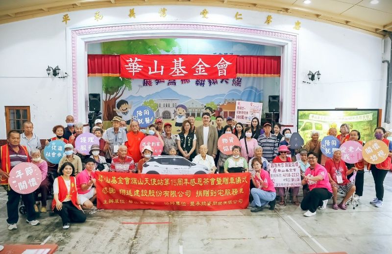 旗山愛心天使站原有車輛陪伴在地孤老超過10年,已老舊不堪故障頻傳,翔廷建設公司總經理侯志鴻長年熱心公益,因了解弱勢長輩服務不能中斷,特於茶會當天捐贈一台全新愛心到宅服務車,期待陪伴、物資送進每位需要的旗山孤老家,讓阿公阿嬤就醫、外出更安心。