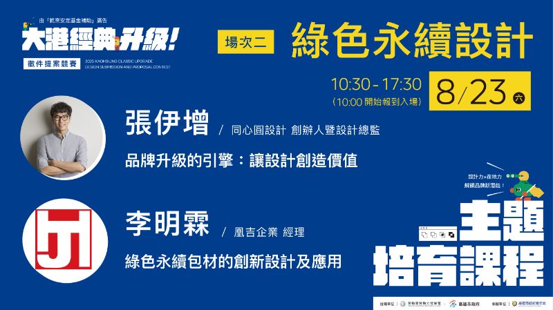 課程將於8月16日至9月7日陸續展開,即日起開放限額報名(https://pse.is/7xehlt),不論是否參賽皆可參與,適合對設計、品牌與創意產業有興趣的青年。更多資訊可至青年局官網查詢(https://reurl.cc/eM2z9b),或加入「大港經典升級提案競賽」LINE官方帳號(@680hadxq),同步追蹤青年局FB、IG、LINE@(@youth.kcg)掌握最新動態。