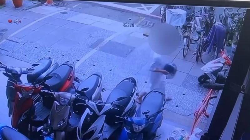 圖/監視器發現涉嫌竊盜案的戴姓男子偷竊機車安全帽。(鹽埕分局提供)