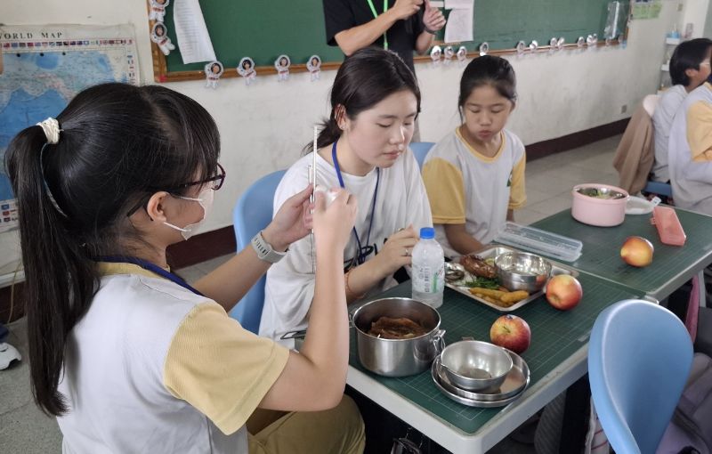 最受矚目的夜市體驗在走廊展開,七個經典攤位讓韓國學生躍躍欲試,套圈圈、打彈珠、丟沙包熱鬧非凡。首次品嚐珍珠奶茶時,韓生們驚喜大喊「好喝!」,全場笑聲不絕。這份專屬台灣的味覺體驗,成了最難忘的跨國記憶。