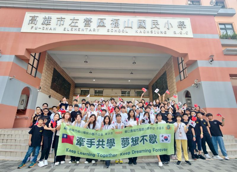 高雄與釜山自1966年締結姊妹市以來,長達59年的深厚交流,此次在教育領域再添精彩篇章。福山國小今年六月才遠赴草邑小學進行跨國共學,這回則以滿滿熱情迎接回訪團。14名草邑學生與5位師長甫抵校,便受到悠揚樂聲與師生掌聲歡迎,迎賓學生手持姓名牌引導入場,韓國師生一踏進校園,就感受到了高雄的溫暖人情。