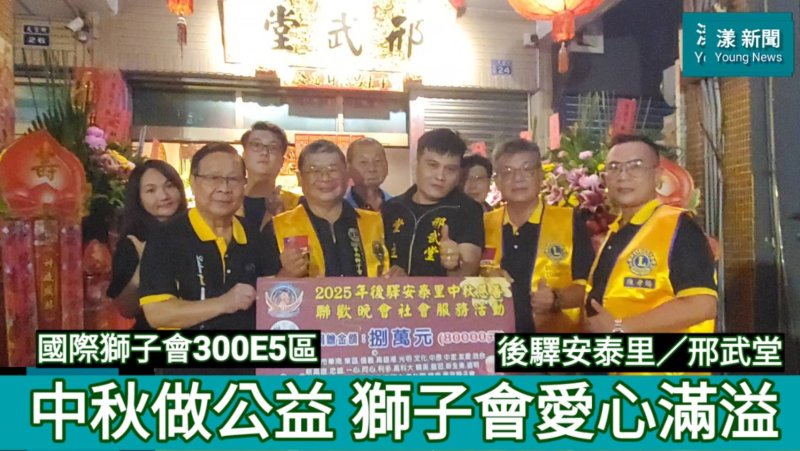 【漾新聞記者陳雯萍/高雄報導】中秋佳節,不只是一家人團聚烤肉的溫馨時光,也能成為播撒善意、凝聚愛心的時刻。國際獅子會300E5區昨(5)日攜手三民區後驛安泰里與邢武堂,共同舉辦「邢善武德 共聚善緣」中秋慈善聯歡晚會。來自27個分會的獅友齊聚,帶來8萬元社服基金與豐富禮品,透過摸彩與表演節目,將善心化作溫暖,讓社區洋溢著團圓與感恩的氛圍。