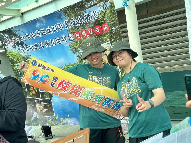 活動現場由雙語班高二信班三位學生擔任闖關主持,以流利中英文解說與民眾互動,展現林園學子的自信與熱情。校內桌球隊教練亦率國高中部隊員擔任志工,協助解說、引導與布置,兩位現就讀國立台南大學與臺東大學的畢業生也熱心回校支援,凝聚「林園人」的團隊精神。