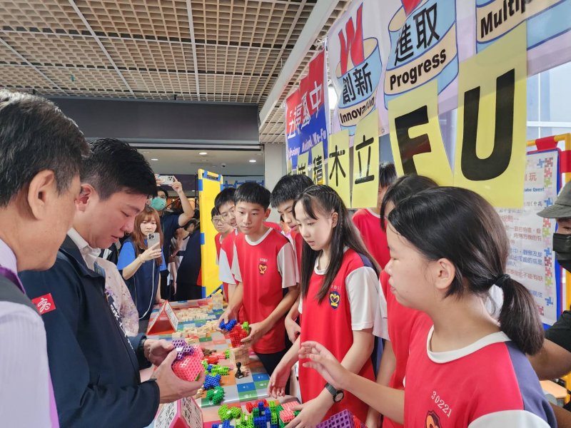 【漾新聞記者陳雯萍/高雄報導】第44屆國民中小學科學園遊會,正於國立科學工藝博物館盛大展出,高雄市多所學校師生熱情參與,展現豐碩的科研成果與創意巧思。其中,五福國中師生以科展研究為基礎設計的「數學積木拼嵌實驗」,將抽象的數學原理轉化為趣味闖關遊戲,並以雙語呈現,成為現場最吸睛的攤位之一,連教育局長吳立森都親自下場挑戰,讚嘆「科學遊戲真好玩!」