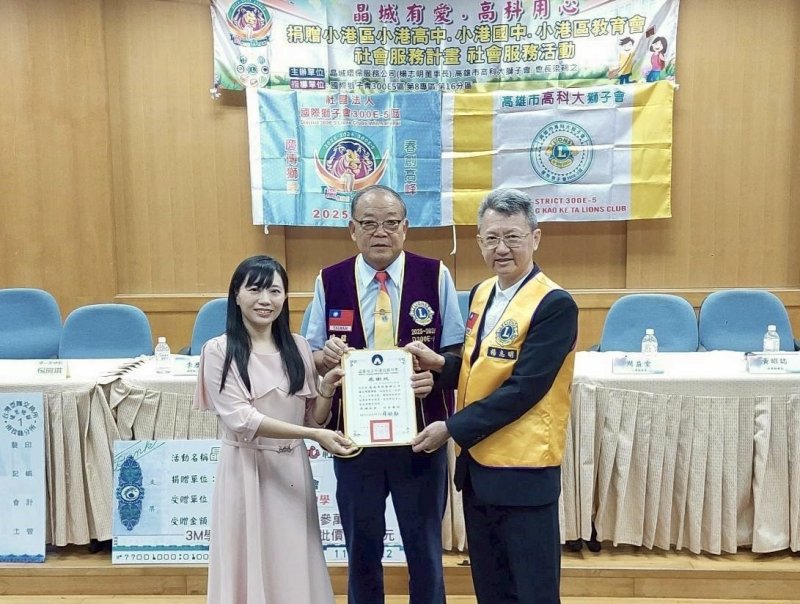 活動中,晶城環保與高科大獅子會共同捐贈小港高中、小港國中及小港區教育會社會服務金新臺幣16萬元整,每校各獲7萬元(含多元發展基金3萬元與市價4萬元的3M體育衛生物資乙批)。此外,並贈予小港區13所國小及河堤國小共1,000件市價399元的兒童愛心雨衣,幫助學童在雨天安全上學。這場跨界善舉,象徵企業長期關注教育永續與學生照護的決心。