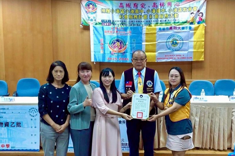 【漾新聞記者陳雯萍/高雄報導】以行動關懷教育、用愛灌溉未來!由晶城環保服務公司、高雄科技大學獅子會聯合主辦、國際獅子會300E-5區指導舉辦的「晶城有愛、高科用心」社會服務捐贈儀式,今(22)日上午於高雄市立小港高中隆重登場。活動結合企業、教育與公益能量,為小港地區學子帶來滿滿祝福與希望,現場氣氛溫馨感人。