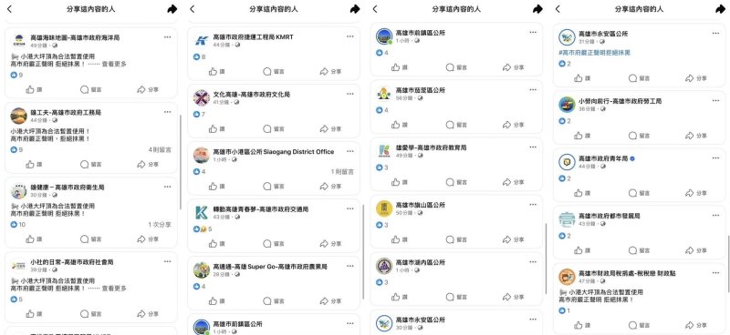 許采蓁指出,10月13日她與立委柯志恩共同前往大坪頂柏油山進行會勘,未料同一時間,高雄市政府竟以官方LINE與多個市府粉專同步發布攻擊柯志恩的圖卡,並要求所屬局處及各區公所「全面轉發」。經清查共有48個市府相關粉專「一條龍動員」,全力圍剿在野黨民代。