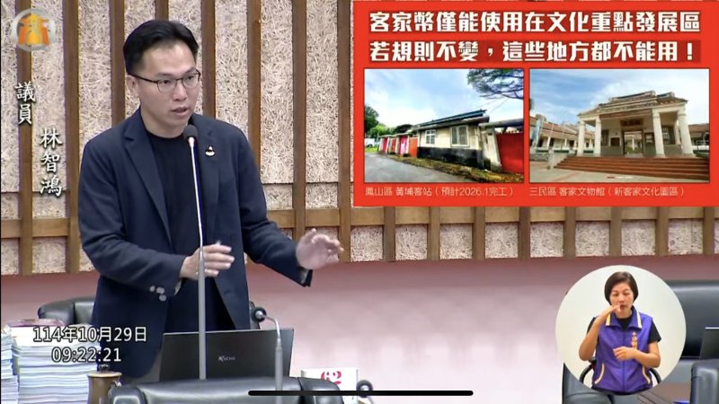 林智鴻表示,客家族群遷徙與下一代就業趨勢使人口逐漸集中都會,「人口比例不是唯一評估文化需求的標準,鳳山客家鄉親不該被制度排除在外。」