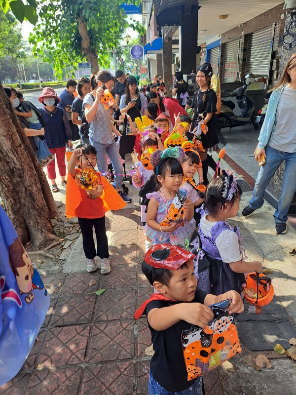 萬聖歡樂旅程自九如國小啟程,學童沿途向社區民眾熱情問候,途中遇見越南料理店老闆娘驚喜教學「Halloween vui vẻ」(越南語:萬聖節快樂),讓孩子秒變國際小達人,展現多元文化交流魅力。可愛陣仗吸引不少民眾駐足拍照,街頭洋溢節慶氛圍,笑聲不斷。