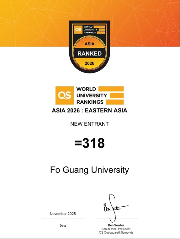 QS Quacquarelli Symonds為全球最具指標性的高教排名機構之一,其評比指標涵蓋學術聲譽、雇主評價、師生比例、國際化程度及研究影響力等項目,為各國政府及學術單位最具信賴的重要參考。本次入榜,不僅象徵佛大學術力持續攀升,也為邁向全球競爭的新篇章揭開序幕。