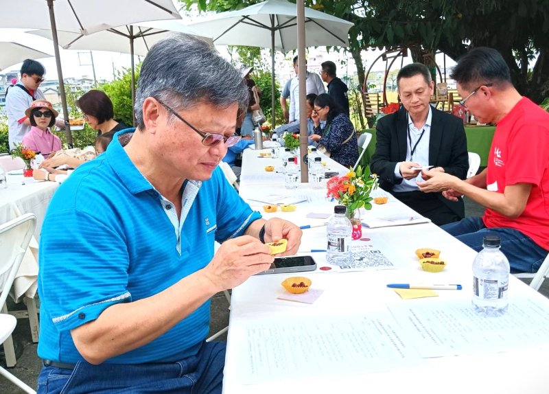 【漾新聞記者黃山高/高雄報導】美濃區農會6日於美濃牛角灣伙房舉辦2025美濃紅豆節,農糧署南區分署陳主任、高雄農業局長姚志旺、高雄區農改場副場長吳志文等人致詞,一開始由朱正富班長解說紅豆生長過程,豆餡品評及產品試吃後,大家把美濃紅豆和外界紅豆食用後的感覺寫出,讓主辦單位參考。