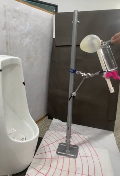 至於研究結果,老師謝甫宜也談到,研究發現,男生在使用小便斗時,最好是水平噴射,這樣噴濺出外面的會比較少。而直立式與懸吊式,又以懸吊式便斗比較理想,因為懸吊式便斗的入水孔比較高。