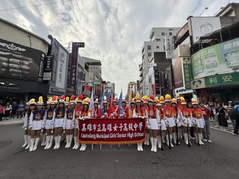 高雄女中樂儀隊以整齊劃一的隊形、精準俐落的槍法與渾厚明亮的管樂聲,展現全國高中職首屈一指的實力。該隊三年內兩度入選國防部全國高中職儀隊總決賽,管樂隊亦於全國音樂競賽連續榮獲特優,今年特別參與嘉義市「百年樂聲,共響嘉年」踩街活動,為明年6月赴美國波特蘭市代表高雄市參與玫瑰花節演出進行暖身彩排。
