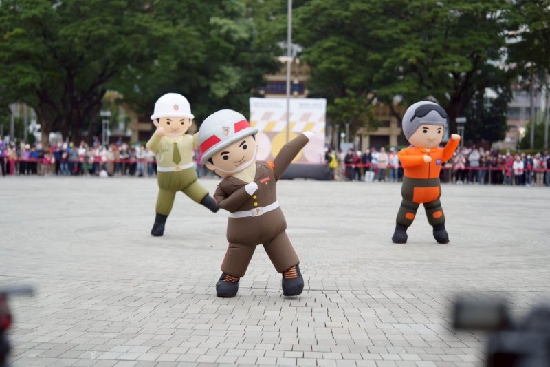 現場氣氛在升旗後逐步升溫,高雄女中樂儀隊、海軍陸戰隊操演及國軍寶寶演出接連登場,莊嚴與活力交織,讓清晨的廣場充滿節慶能量。迎接象徵奔騰與希望的丙午馬年,祈福儀式中,康裕成與陳其邁共同啟動象徵裝置,燈光閃耀間,為城市注入前行的祝福。
