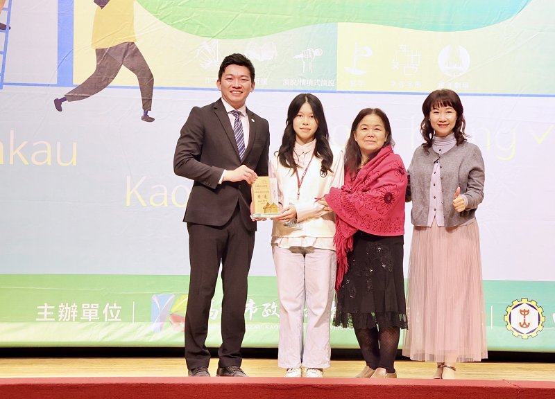 原住民族語項目同樣耀眼。來自文藻外語大學的鄺呂軍與小港國中的鄺可加兄妹檔,在「臺灣原住民族語言情境式演說」分別勇奪萬山魯凱語高中組與國中組特優,去年兩人即在原住民族語朗讀同獲特優,今年再度挑戰情境式演說仍展現穩健實力。兄妹倆自幼浸潤族語文化,也在家庭陪伴與學校師長引領下持續精進,呈現家庭、學校與文化傳承三方共育的成果。