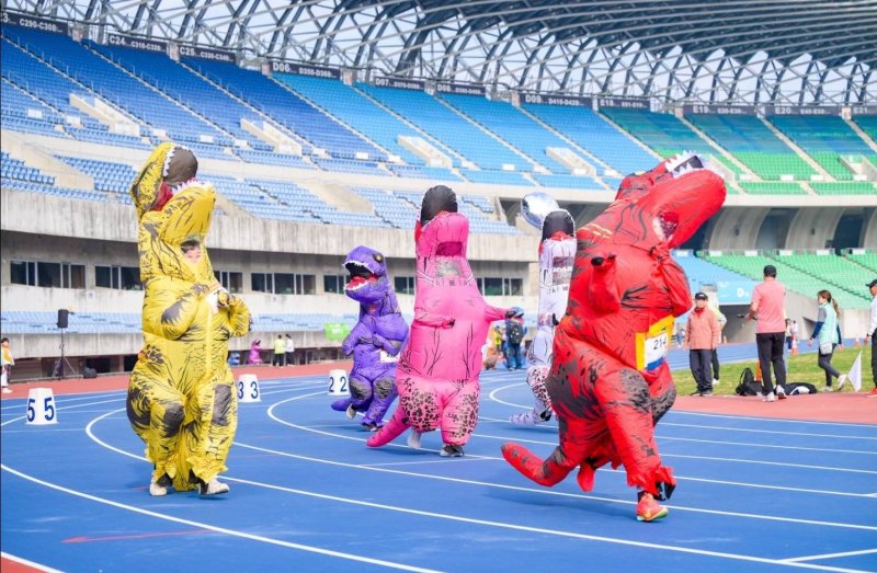 【漾新聞記者陳雯萍/高雄報導】一年一度的城市路跑盛事再度點燃高雄熱情。由高雄市政府運動發展局主辦、富邦人壽冠名贊助的「2026高雄富邦馬拉松」,今(10)日於國家體育場熱鬧登場,首日由5公里休閒組及寵物路跑嘉年華率先開跑,超過200隻恐龍裝扮選手齊聚田徑場奔跑競速,加上吉祥物與啦啦隊趣味對決,讓國體場瞬間化身最歡樂的城市派對。