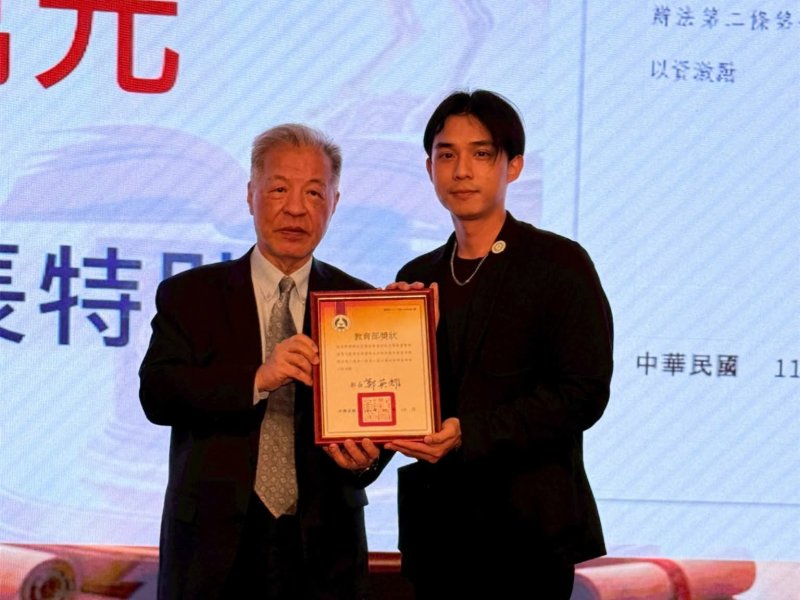 樹德科技大學校友總會理事長劉柏楊多年支持母校發展,從資源挹注到活動參與始終不曾缺席。提克斯國際餐飲執行長特助黎孟軒則代表企業受獎,兩人一前一後站上舞台,象徵校友、企業與學校之間逐漸形成穩固而持續的連結,將個人的成功轉化為推動教育向前的動能。