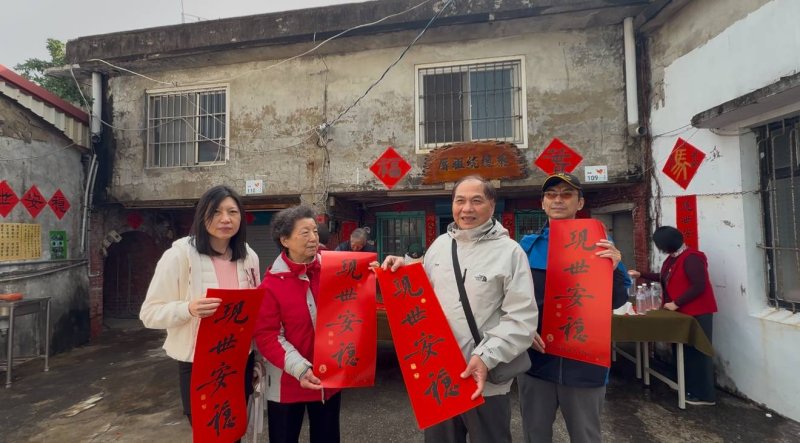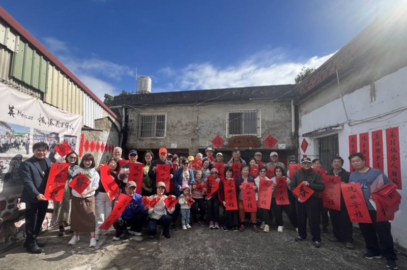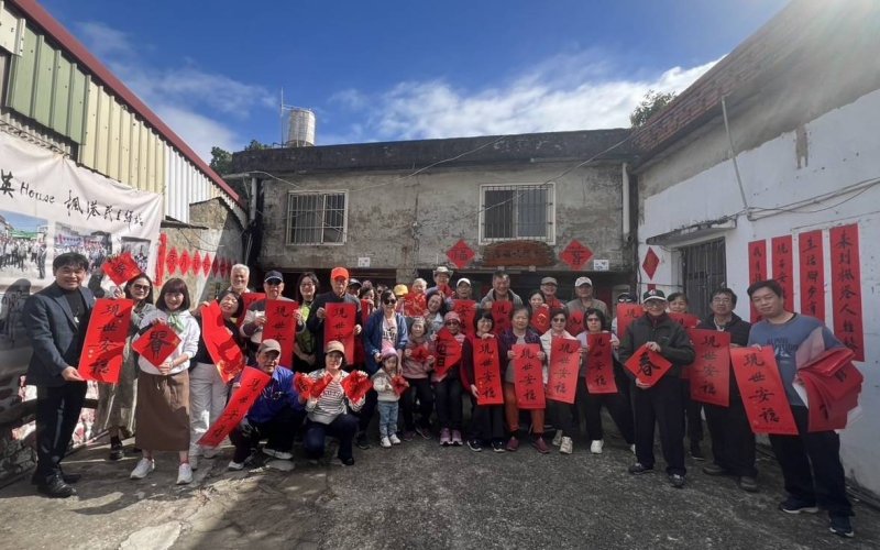 【漾新聞記者陳雯萍/高雄報導】農曆新年腳步將近,位於屏東國境之南的「英House—楓港民主驛站」25日上午再度飄起墨香,國立屏東大學視覺藝術研究所學會齊聚前總統蔡英文祖厝,舉辦揮毫迎新、贈送春聯活動。今年以「現世安穩」為丙午迎新春主題,正廳懸掛「丙午和風行大道,人間安穩在當前」條幅,筆墨之間,為楓港寫下一幅溫潤而深刻的新春風景。