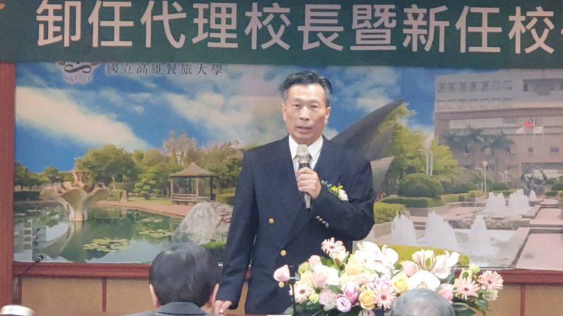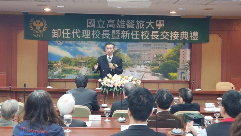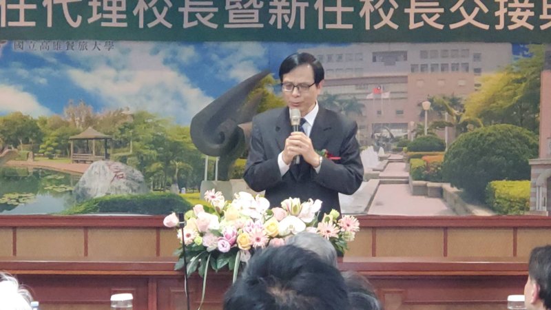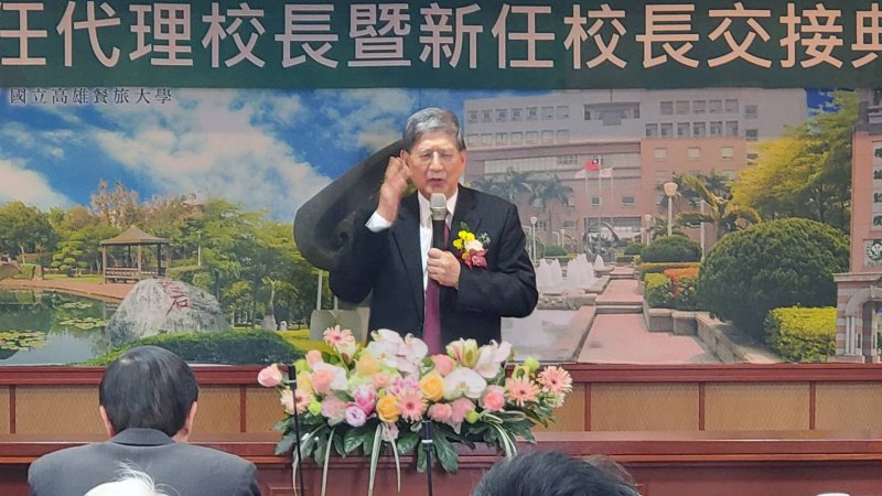 前校長陳敦基致詞時,向高雄餐旅大學與高雄師範大學的教職同仁,以及在場多位貴賓表達問候,並感謝代理校長陳國泰在關鍵時刻「等到對的人、也跟到好的人」,讓學校順利完成階段性任務。他回顧,高餐歷任校長至今已來到第五任,自己當年甫上任不久時,曾接受時任校長的期許,希望他能在第一線「強棒出擊」,承擔重任;也因曾在前校長容繼業任內擔任副校長,彼此如同一家人。