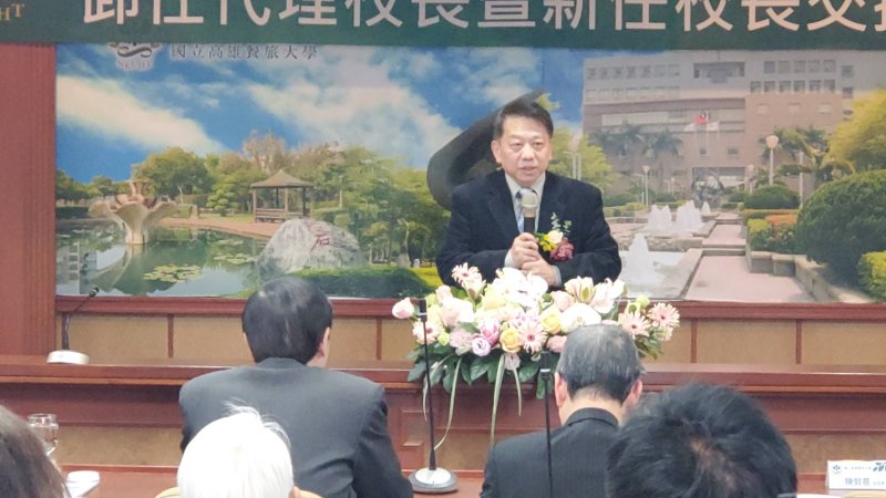 隨後,前校長、現任監察委員蔡培村致詞回顧自己三年來與高餐大的深厚緣分,並強調高餐大是一所具有品質與底蘊的大學。他勉勵方德隆校長以「學習型、服務型」領導為核心,秉持誠心、整合資源、展現積極行動力,帶領學校持續轉型精進,讓高餐大再度成為台灣引以為傲的大學典範。