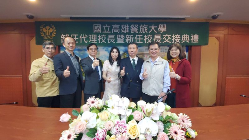 【漾新聞記者陳雯萍/高雄報導】國立高雄餐旅大學今天上午在行政大樓六樓舉行第五任校長交接典禮,代理校長陳國泰將印信正式交付新任校長方德隆,師生兩人隨即相互擁抱,現場掌聲不斷。這場交接不僅象徵校務正式交棒,也因多重教育脈絡交會,被形容為教育界難得一見的「五代同堂」時刻,為高餐大寫下別具溫度與歷史感的一頁。
