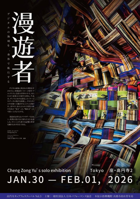 【漾新聞記者陳雯萍/高雄報導】曾於「KFA 高雄時尚大賞」榮獲銅賞及最具商業價值賞的新銳設計師余承倧,在高雄市政府青年局輔導資源與國際鏈結支持下,受日本表演協會邀請,於1月30日至2月1日跨海前往東京「座・高円寺2」公共劇場舉辦《漫遊者——在數位海域中,以身體航行》個展,並與「東京踢踏舞藝術節」跨域合作,展現高雄青年設計躍上國際舞台的成果。