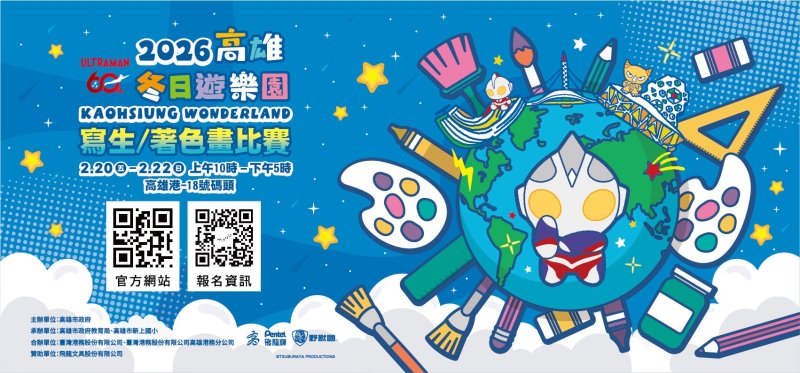 【漾新聞記者陳雯萍/高雄報導】冬日暖陽映照港灣,高雄港18號碼頭即將化身最繽紛的藝術舞台。由高雄市政府教育局主辦的「2026冬日遊樂園寫生暨著色畫比賽」將於2月20日至2月22日登場,活動結合寫生創作、著色畫比賽與親子互動,更邀請人氣角色超人力霸王現身同樂,預料吸引萬名學童與家庭走進港灣,以畫筆描繪城市風景,為新春假期增添藝術氣息。