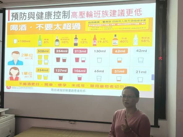 在實務建議方面,講師鼓勵同仁以運動、規律作息與冥想等方式紓解壓力,並透過均衡飲食與補充維生素B群維持身體機能,同時落實「無酒日」概念。如有飲酒困擾,也可尋求專業醫療協助,善用醫療院所酒精戒治門診資源,由專業團隊提供支持與陪伴。