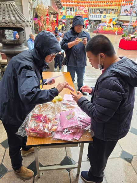 活動現場除在地鄉親踴躍參與外,不少前來參拜的民眾也主動停下腳步,仔細閱讀警方整理的常見詐騙手法,包括「假投資高獲利」、「假親友借錢」、「假檢警恐嚇監管帳戶」及「網購詐騙解除分期」等案例。警方透過淺顯易懂的問答設計,引導民眾辨識詐騙關鍵話術與特徵,加深印象。