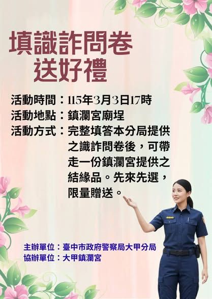 警方呼籲,面對不明郵件或訊息務必冷靜查證,不點擊來路不明連結、不隨意填寫個資,若接獲可疑通知,可撥打165反詐騙專線諮詢,共同守護個人資料與財產安全。