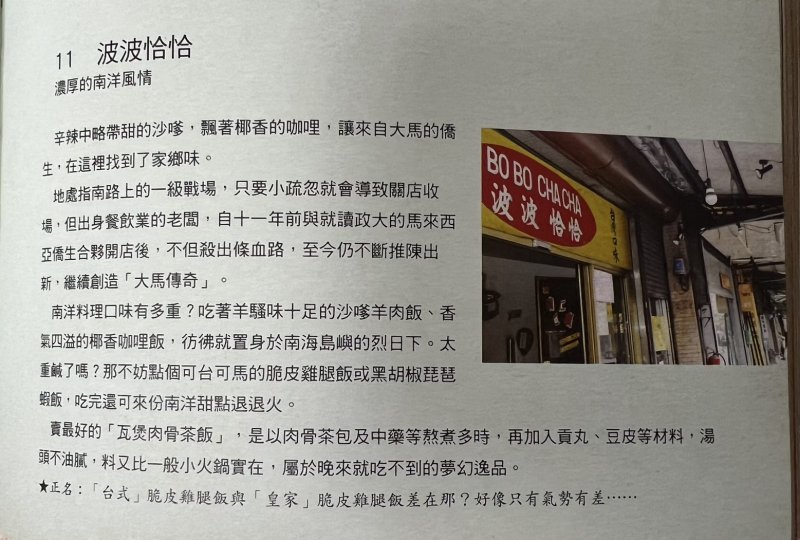回溯約二十年前的校園指南《在政大不可不做80件事》,「波波恰恰」早已名列其中,記錄著一段南洋風情的「大馬傳奇」。當年由餐飲業者與馬來西亞僑生攜手創業,在指南路競爭激烈的餐飲版圖中闖出名號。從沙嗲羊肉飯、椰香咖哩,到晚來吃不到的瓦煲肉骨茶飯,每一道料理都承載著異國與青春交織的氣味。