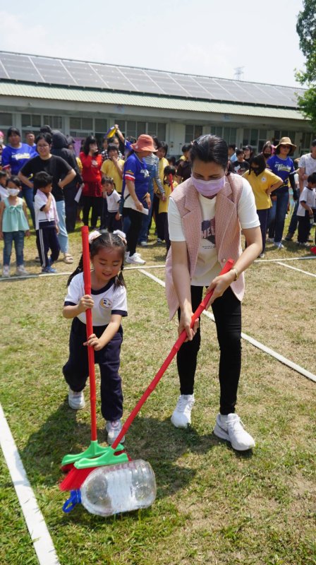 社區力量的融入,更讓活動增添溫度。田寮里里長連于萱率領長壽班(千歲團)帶來30人健身體操,整齊劃一的動作與笑容,象徵世代共融的美好圖像。操場周邊設置多元攤位,包含田寮區衛生所、田寮區農會、田寮區公所與大崗山青商會贊助爆米花,高雄市灶蘭大日慈善會更提供志工腳底按摩服務,讓校園化身為充滿人情味的社區嘉年華。