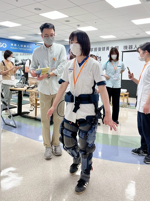 在親身體驗機器人復健設備的過程中,學生們不時提出問題,並與院方人員交流日本與台灣在相關技術上的差異與發展方向。現場討論熱絡,從設備操作到治療流程,皆展現出跨國醫療知識互補的價值,也讓這場參訪不僅是觀摩,更成為雙向學習的實踐場域。