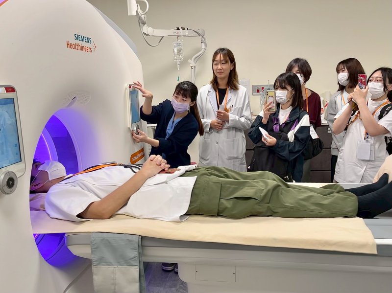 轉至影像醫學科,由一般攝影組組長洪少筠帶領參訪動線,透過影像診斷流程的實地解說,讓日方師生深入理解台灣醫院在影像判讀、設備配置與品質控管上的專業制度。從拍攝到判讀的每一環節,展現醫療體系中精準與效率並重的運作邏輯,為學生提供寶貴的臨床實務視角。