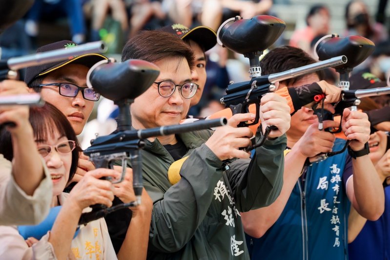 【漾新聞記者陳雯萍/高雄報導】由高雄市教育局、社教館,與高雄市漆彈推廣協會聯合主辦的「2026校園暨親子神槍手-全國漆彈大作戰」,已經邁入第22年,今天上午,在教育局長吳立森的主持下,攜手立委賴瑞隆、市議員陳麗娜、張博洋,以及李順進、黃彥毓、蔡武宏議員服務處主任…等人,共同射擊6面象徵標語帆布卷軸,象徵邁入新的里程。