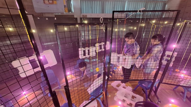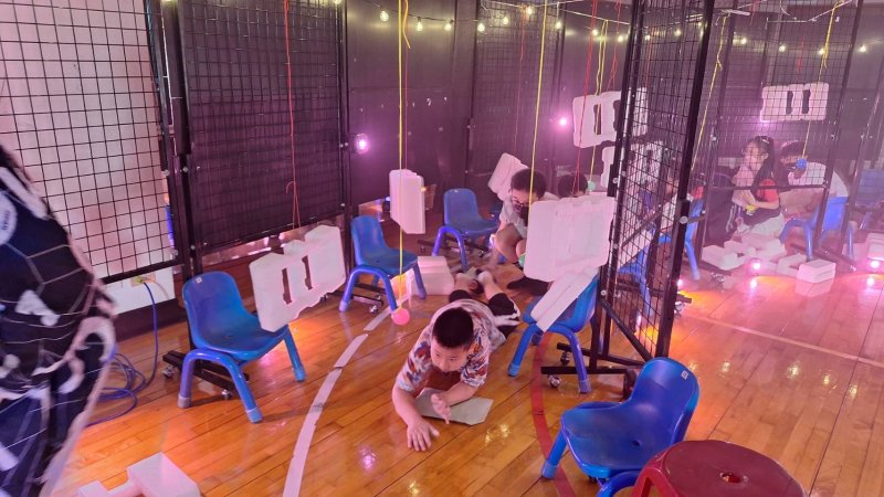 人氣關卡「紅色警戒」融合表演藝術與節奏反應,由各班設計障礙物並由表藝老師李榮山整體規劃,透過線材、聲光效果與乾冰營造冒險氛圍,學生需在節奏中閃避障礙,完成任務,現場氣氛緊張又充滿趣味。
