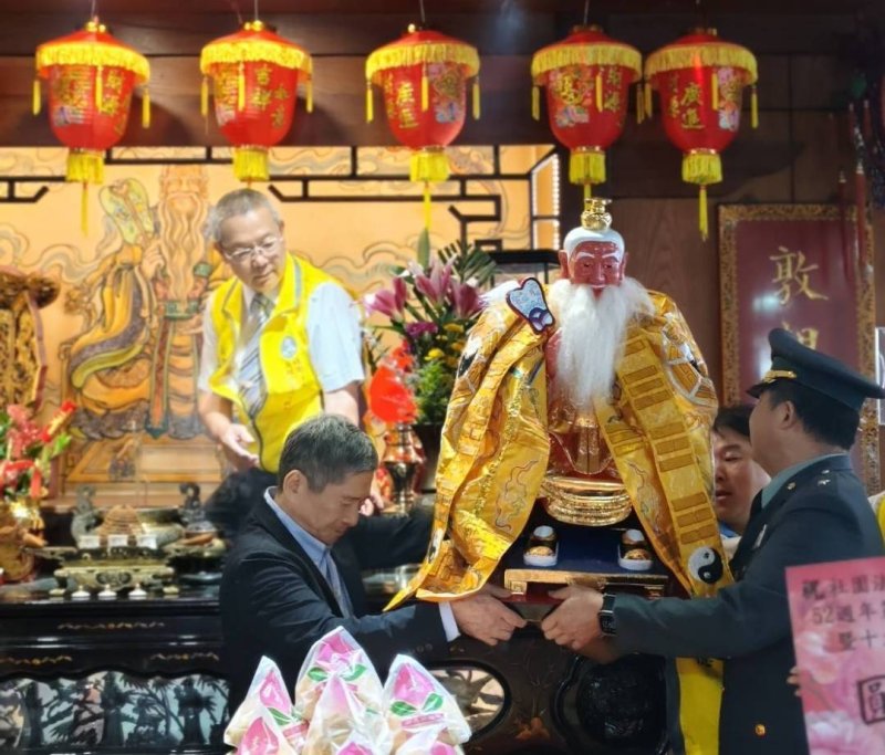 今日的儀式,最重要的是穿上新神衣的太上老君道祖神位的安座,在理事長李慶傳的主持下,邀請宗長前文化部長李永得、陸軍澎湖防衛指揮部副指揮官李傑少將,擔任文、武官,為穿上新神衣的太上老君道祖,進行神位的安座儀式。