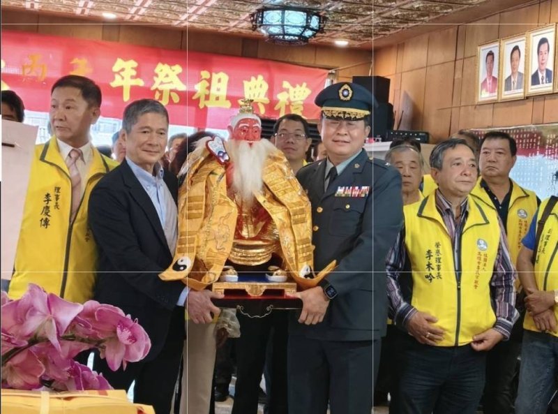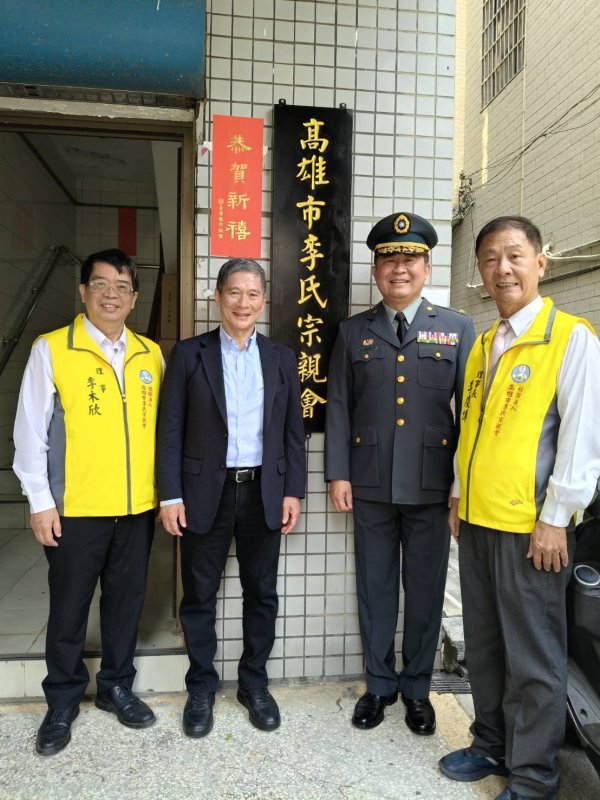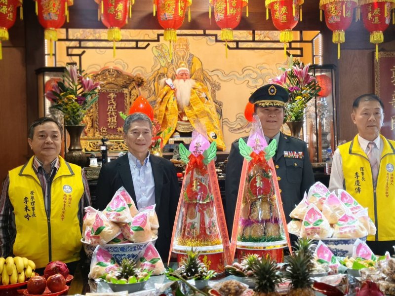 封面圖說:典禮由前文化部長李永得(左三)及陸軍澎湖防衛指揮部副指揮官李傑少將(右三)分任文、武官,協助完成安座儀式。左二為高雄市李氐宗親會理事長李慶傳。(記者陳雯萍攝)