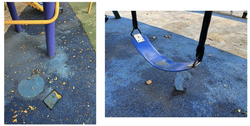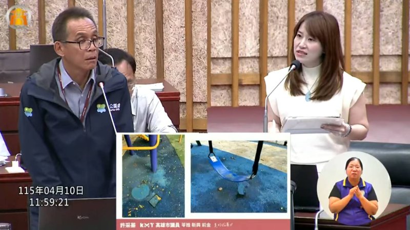 除地下道問題外,許采蓁亦關切北凱旋公園兒童遊戲場安全,指出地墊破損及接縫高低差情形已存在多時,里長早於去年即反映問題,且已有兒童因絆倒受傷,但改善工程遲未啟動,影響公共安全。
