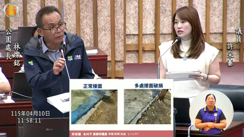 此外,許采蓁也提及六合公園遊樂設施建置案,該案為前年爭取推動,原訂去年底完成設計,惟至今尚未完工,進度明顯落後。她要求公園處加速作業,應於今年上半年完成北凱旋公園地墊更新,並如期交付六合公園設施。