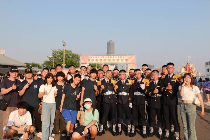 ▲高雄市立志中學軍儀隊於演出前在澄清湖球場合影。(漾新聞記者陳雯萍翻攝)