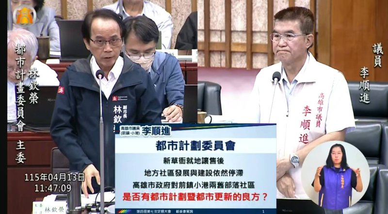 李順進強調,都市計畫不應被動等待重大建設,而應主動先期布局,為未來交通與產業發展預留空間。他呼籲市府跨局處協調,讓小港、前鎮在轉型過程中真正受益,而非再次被忽略。