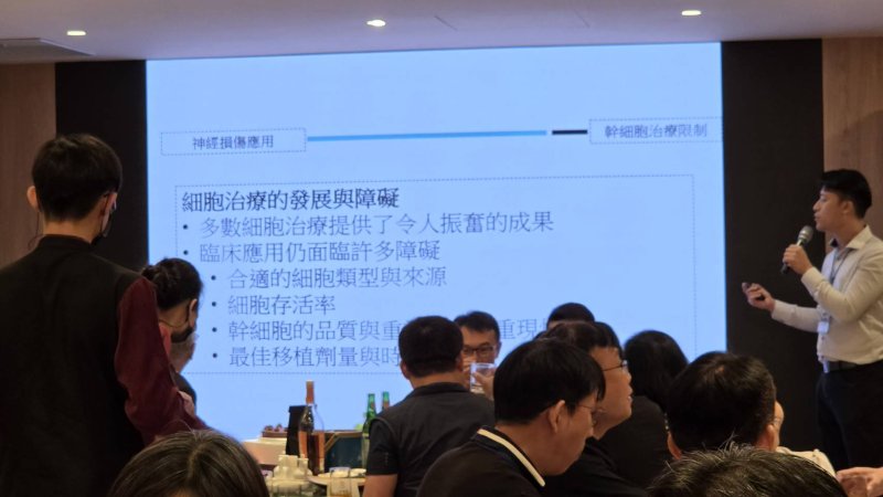 本次活動特別邀請義大大昌醫院副院長孫灼均醫師擔任主講人之一,孫灼均同時具醫學專業與臨床實務背景,他以「細胞治療基本概念」為主軸,介紹細胞療法的應用與發展,並說明基因編輯技術仍存在安全性挑戰,例如分子剪刀可能誤觸非目標基因,或誘導性幹細胞仍有潛在風險,強調醫療科技需持續精進。