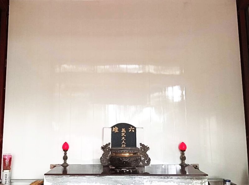 義民祠長期由鄰居奉祀,因年久失修,後面壁板剝落,唯心聖教旗山道場即將進行興建工程,本月底進行水陸法會,上供諸佛聖賢、下施六道眾生,法師感應到附近有「六堆義民大人」義民祠,特地前來訪視,發現壁板剝落現況,蘇董立即請木匠前來整修,更換成不會剝落的塑膠板,裝修得光鮮亮麗,功德無量。