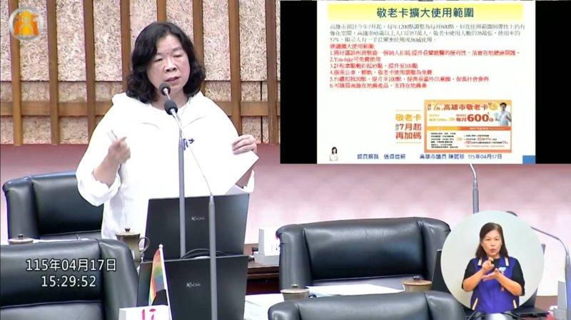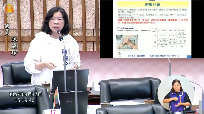 質詢最後,陳麗珍也簡短提及高齡者居住議題,指出不少房東不願出租給高齡長輩,銀髮族居住困難日益浮現,左營等地現有銀髮家園數量仍相當有限,未來也應納入社政部門持續檢討與規劃。