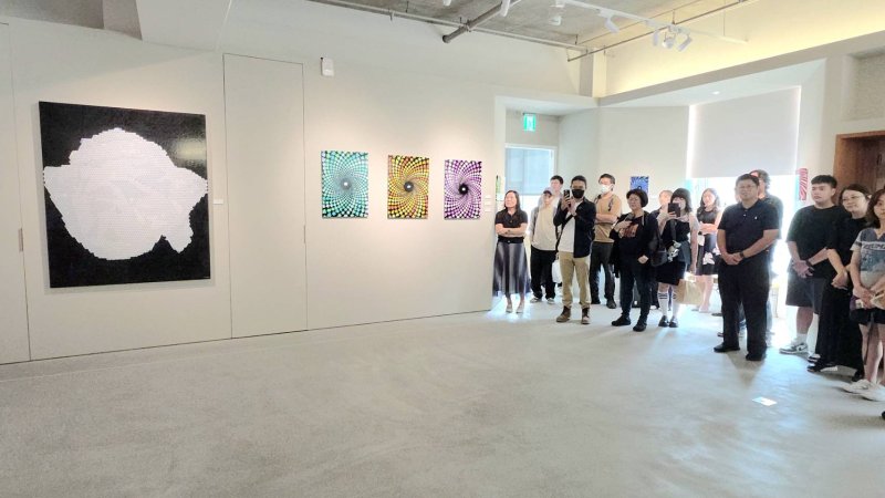 【漾新聞記者陳雯萍/高雄報導】與台灣有8年情感連結的日本藝術家Noriyuki.桑幡紀行,自4月11日起於新思惟人文空間舉行個展「BORN」,透過大小點點與圖案的規則排列,讓作品呈現出物理空間感與力學流動感,形成充滿能量的視覺節奏。在台日情感故事的烘托下,作品不僅展現創作符號與特色,更承載著藝術家與台灣友人千絲萬縷的深刻情誼,讓畫面律動顯得格外鮮活。