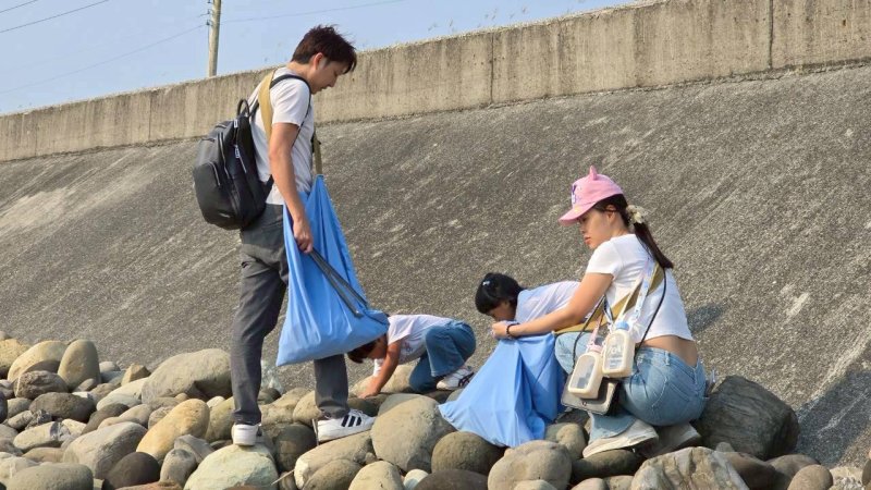 活動現場氣氛熱烈,志工們分組沿海岸線推進,在烈日與海風中彎腰撿拾垃圾、接力分類,將散落在石灘與消波塊間的塑膠、瓶罐與廢棄物逐一清理。從青年學子到社區長者,從親子家庭到校友團體,每一雙手都投入其中,讓「用行動守護海洋」不再只是口號,而是此刻最真實的風景。