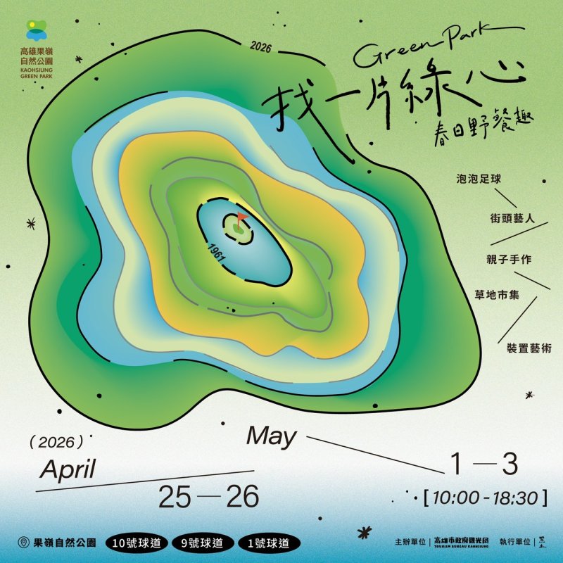 【漾新聞記者陳雯萍/高雄報導】暖風吹拂,草地甦醒,高雄春日最療癒的戶外活動即將登場。由高雄市政府觀光局主辦的「找一片綠心—春日野餐趣」,將於4月25日至26日及5月1日至3日連續兩週假期,在高雄果嶺自然公園熱鬧展開。活動以「打開城市的心,從一片草地開始」為主題,結合裝置藝術、泡泡體驗、市集與表演,打造一場融合自然與生活美學的城市草地派對。