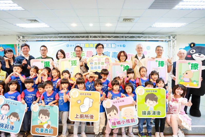 由高雄市政府衛生局規劃的「一起洗手趣,腸病毒走開」宣導活動,在輕快節奏與童聲笑語中展開。陳其邁與高雄熊走入學童之間,親自示範正確洗手方式,並隨音樂節奏帶動全場學童律動,讓原本抽象的防疫知識化為生動記憶,現場氣氛熱絡,學童踴躍參與。